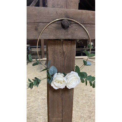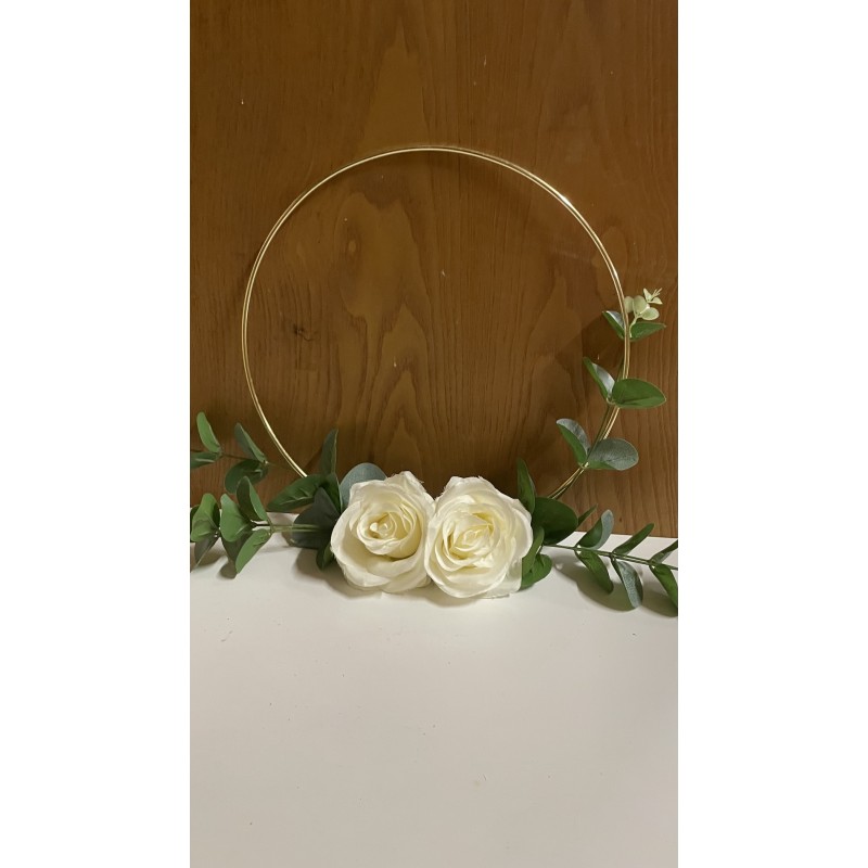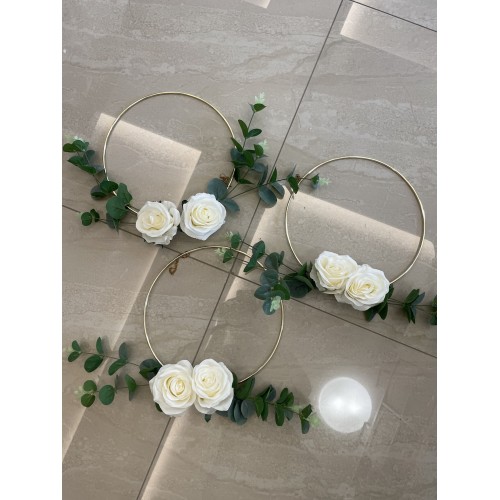 Zlaté kruhy s aranžmá, průměr 25 cm. K dispozici 8 kusů.