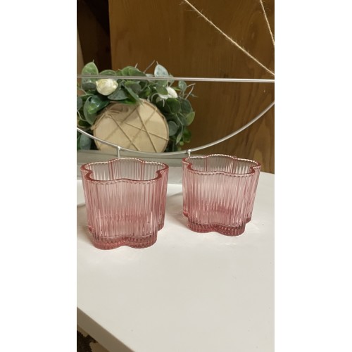 Růžové svícny výška 6 cm. K dispozici 7 ks.