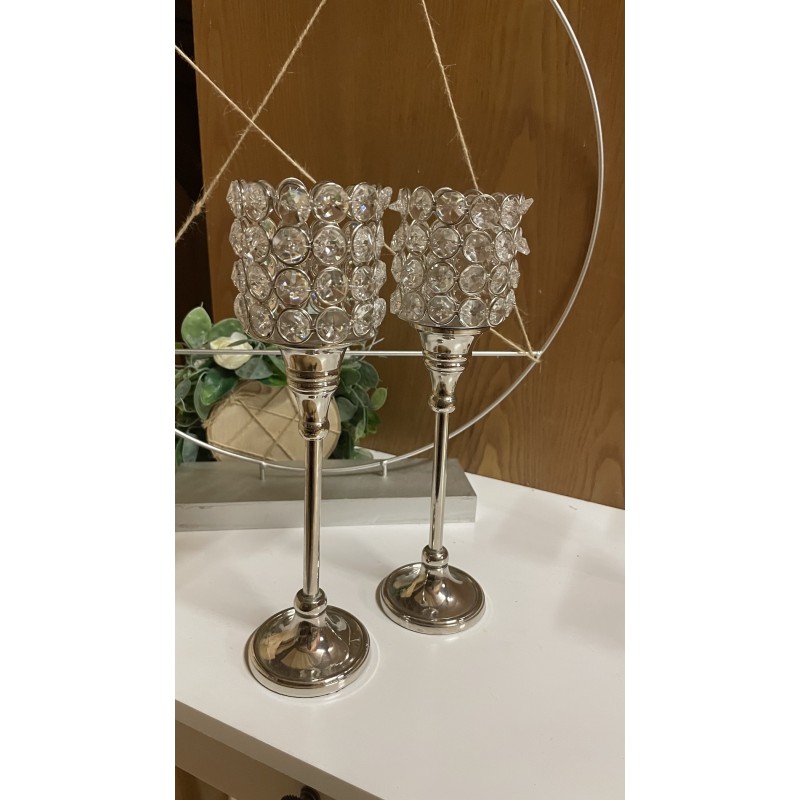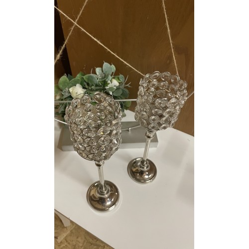 Křišťálový vysoký svícen/obal na květiny. Výška 27,5 cm. K dispozici 6 ks.
