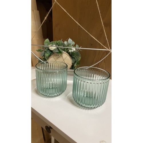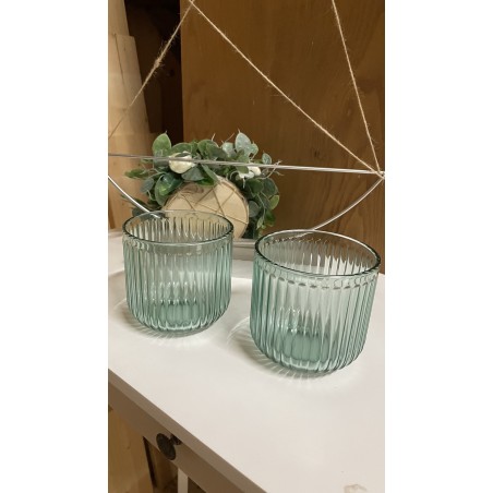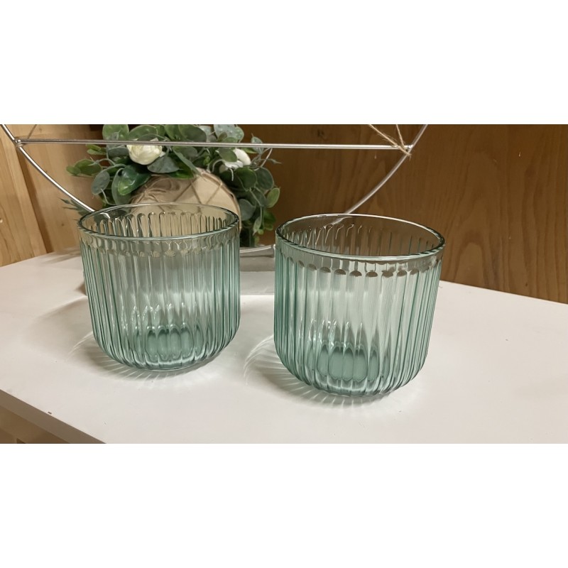 Zelenkavé větší svícny, průměr 10 cm, výška 10 cm. K dispozici 4 kusy.