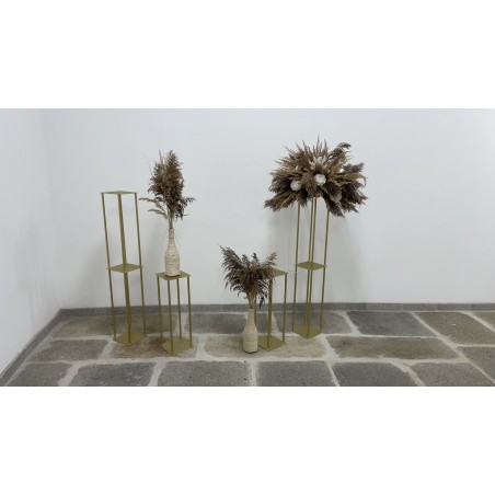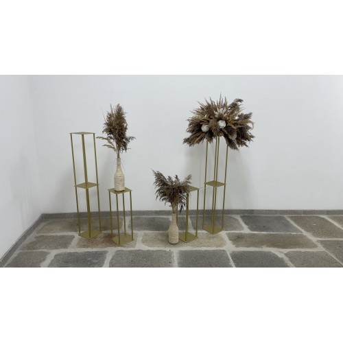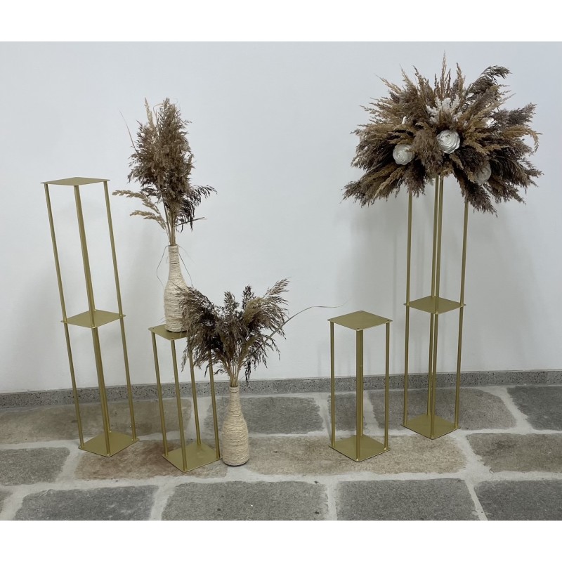 Sada 4 zlatých podstavců/stojanů na květiny a dekorace. Cena za všechny 4 podstavce bez dekorací. Výška 2x 100 cm a 2x 50 cm.